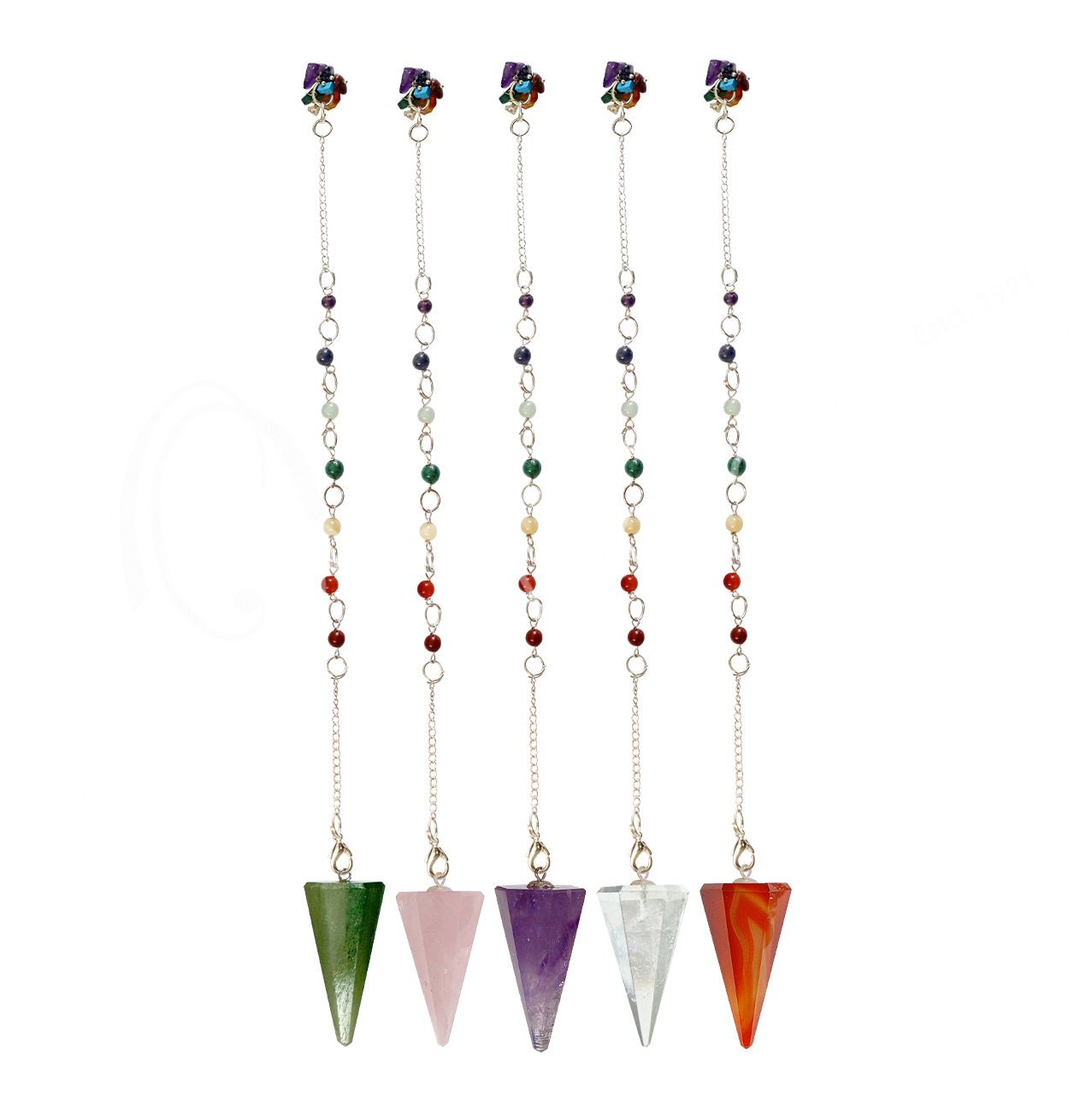 PENDULUM – HEXAGONAL MIXED STONES CHAKRA CHAIN WITH CHIPS 10″L