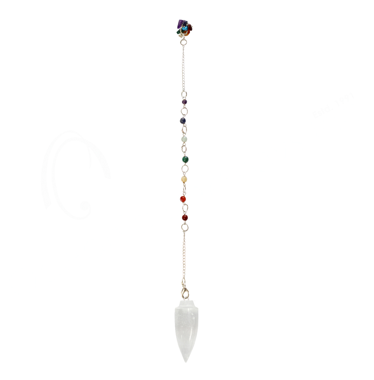 PENDULUM – TEARDROP SELENITE CHAKRA CHAIN 10″L