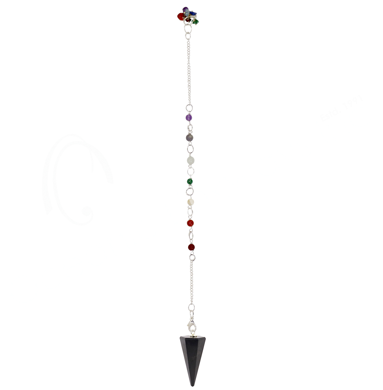 PENDULUM – HEXAGONAL SHUNGITE CHAKRA CHAIN WITH CHIPS 10″L