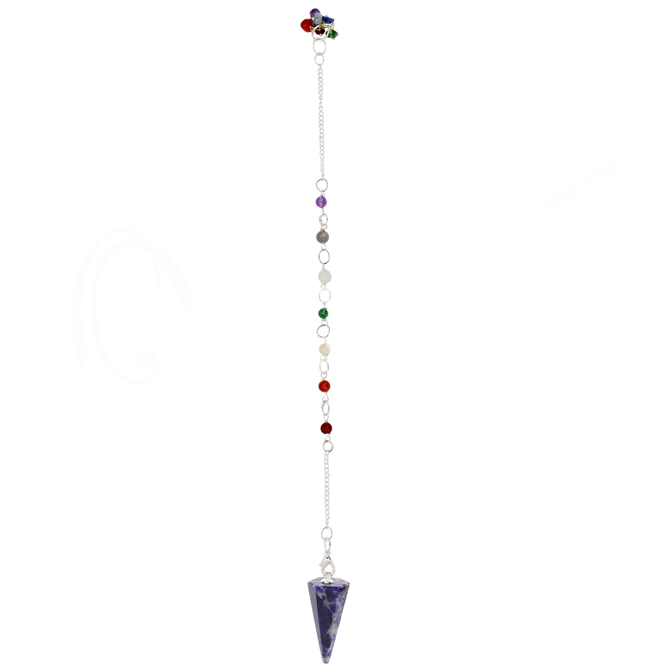 PENDULUM – HEXAGONAL SODALITE EX CHAKRA CHAIN WITH CHIPS 11-11.5″L