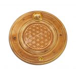 INCENSE HOLDER – WOOD ROUND LASER CARVED FLOWER OF LIFE (PK 3) 4″DIA