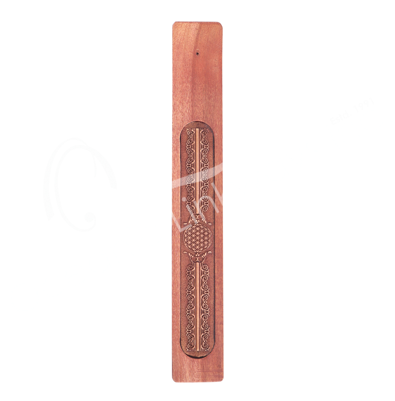 INCENSE HOLDER – ACACIA WOOD LASER ENGRAVED FLOWER OF LIFE (PK 3) 10″L