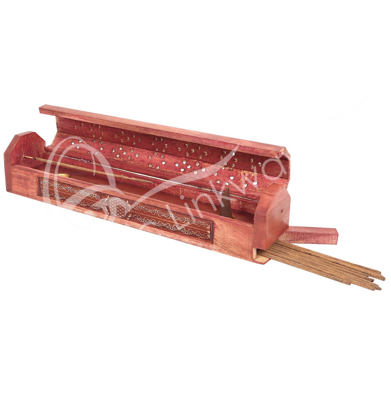 INCENSE STORAGE BOX – ACACIA WOOD LASER ENGRAVED FLOWER OF LIFE (PK 2) 12″