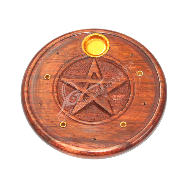 INCENSE HOLDER – WOOD ROUND PENTACLE 4″DIA