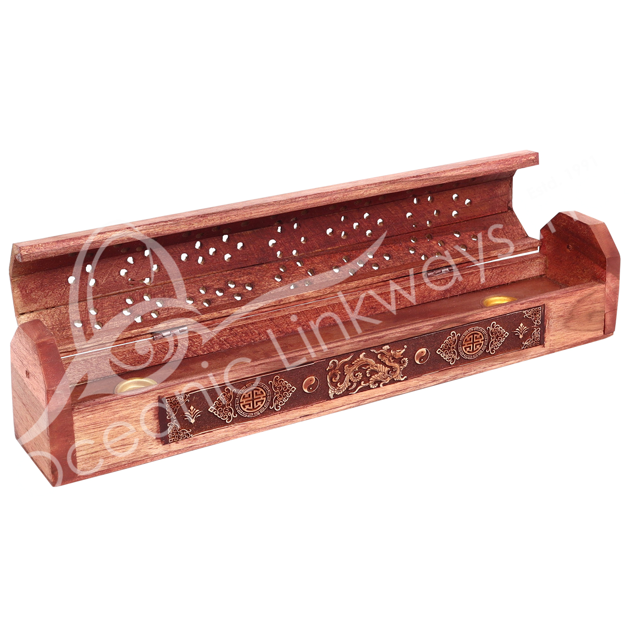 INCENSE HOLDER – ACACIA WOOD LASER ENGRAVED DRAGON (PK 3) 10″L
