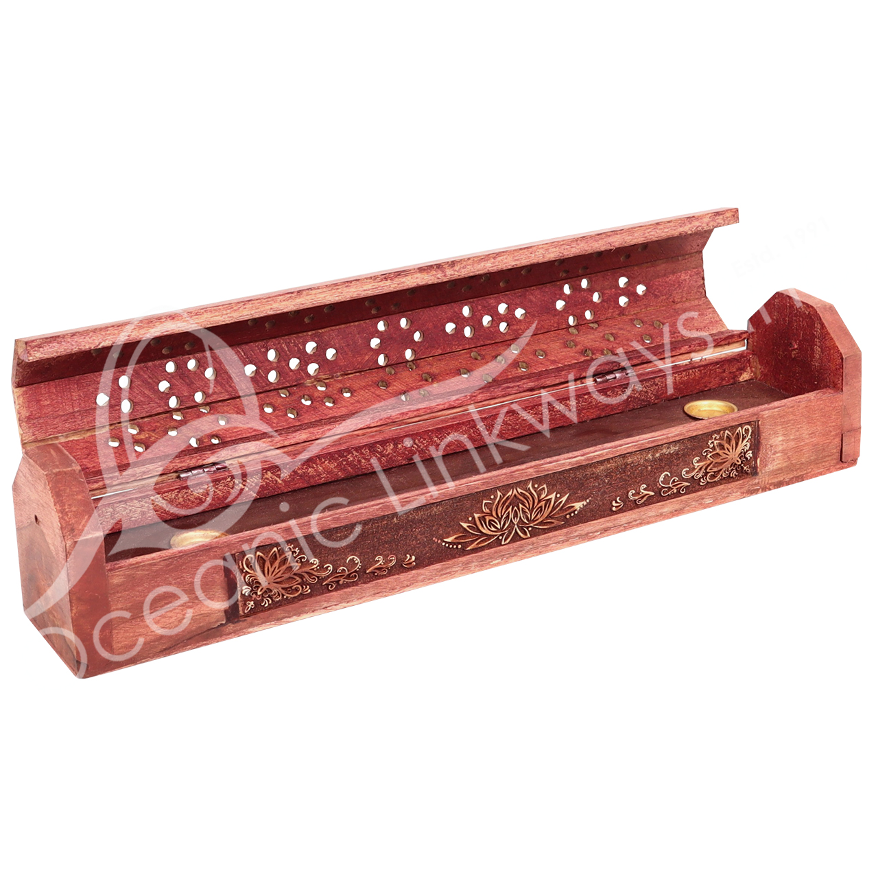 INCENSE STORAGE BOX – ACACIA WOOD LASER ENGRAVED LOTUS (PK 2) 12″