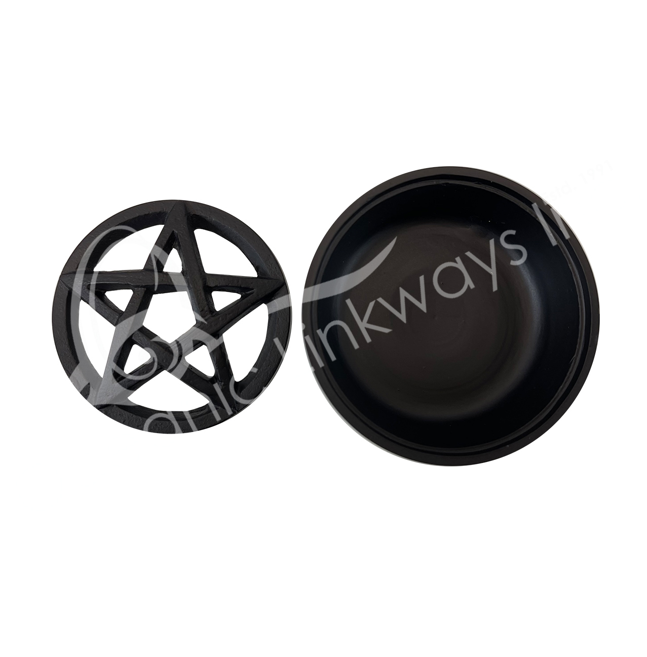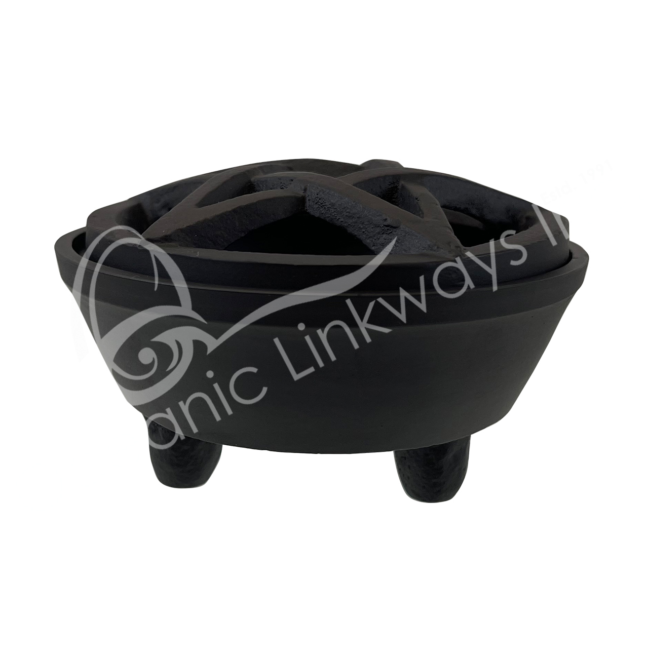 INCENSE HOLDER – CAULDRON WITH PENTACLE LID CAST IRON 3.25″