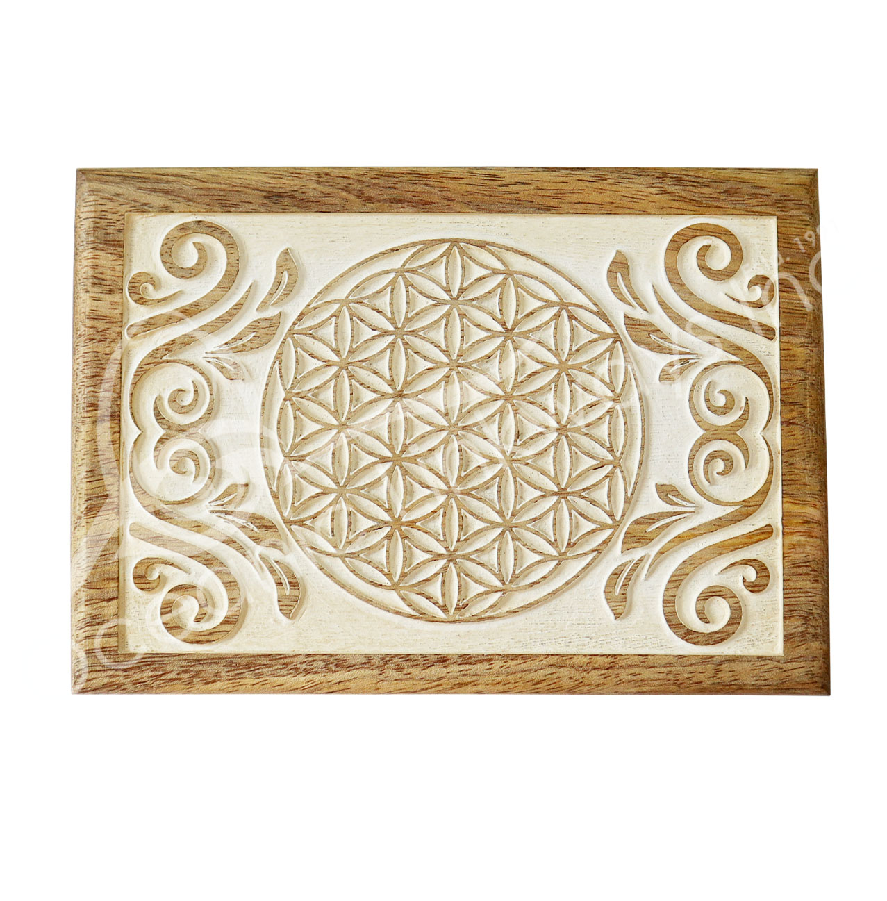 BOX – MANGO WOOD MACHINE CARVED FLOWER OF LIFE 5 X 7″