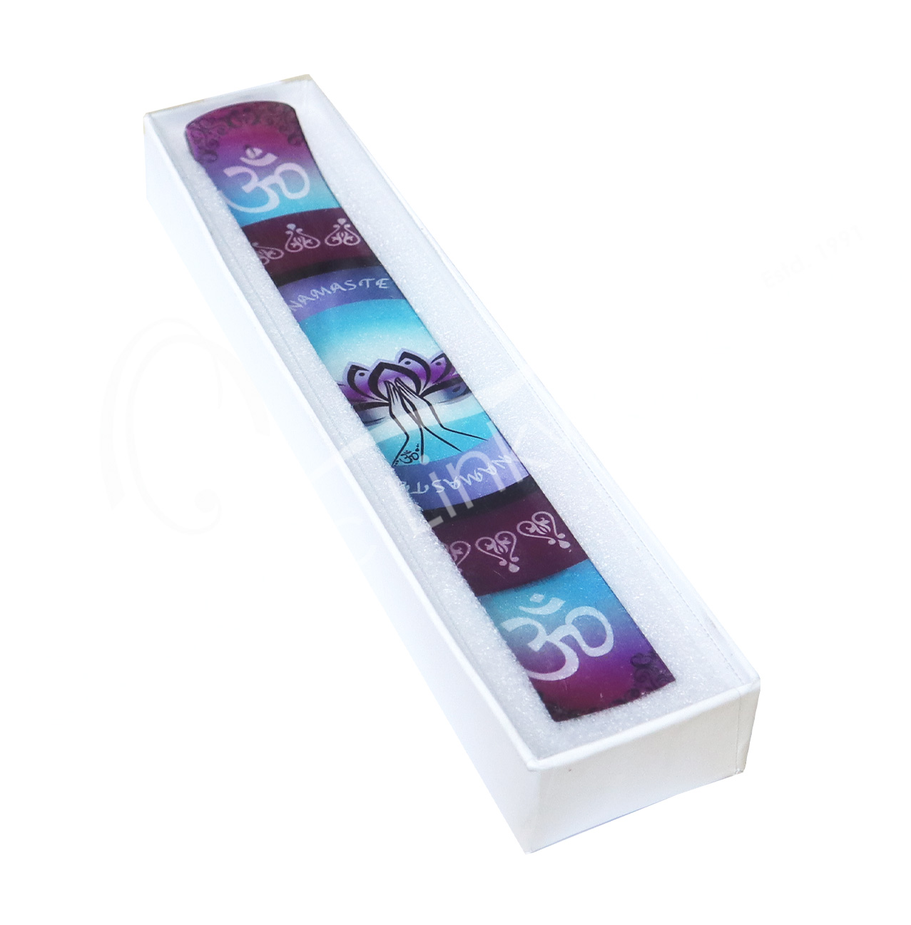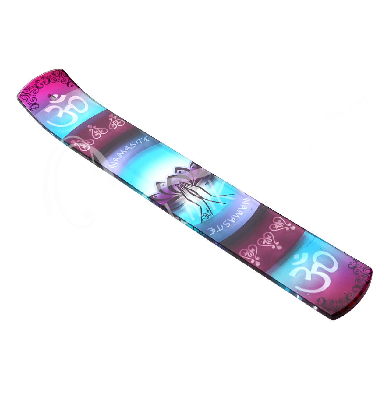 INCENSE HOLDER – GLASS PRINTED NAMASTE 10 X 1.5″