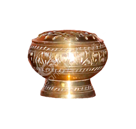 INCENSE HOLDER – BRASS, GOLD BOWL WITH GRID 2″