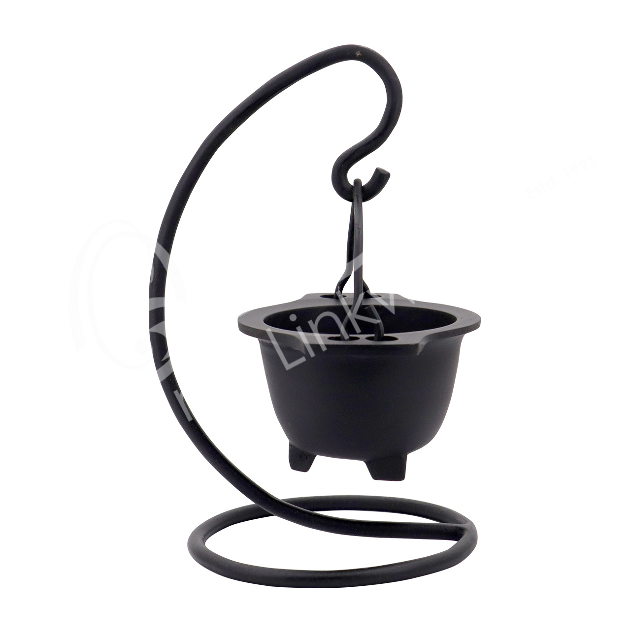 INCENSE HOLDER – BLACK METAL HANGING BOWL WITH STAND 6″H