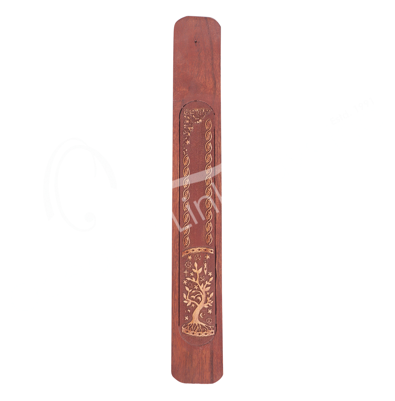 INCENSE HOLDER – ACACIA WOOD LASER ENGRAVED TREE OF LIFE (PK 3) 10″L