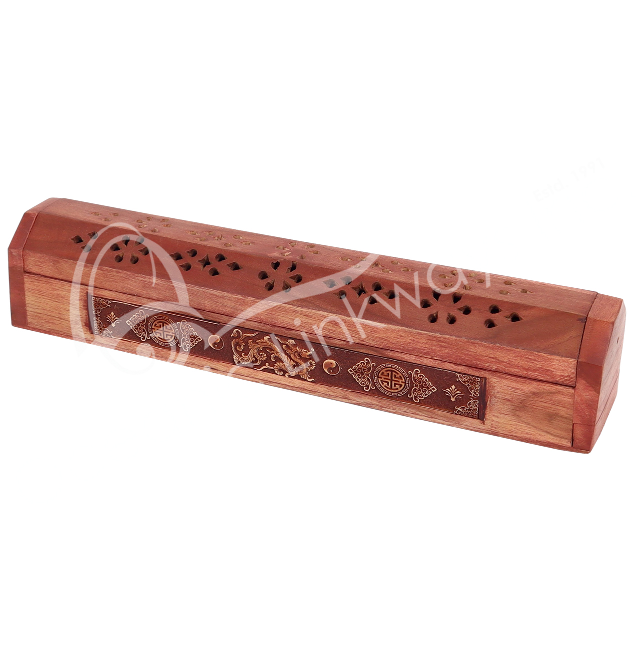INCENSE HOLDER – ACACIA WOOD LASER ENGRAVED DRAGON (PK 3) 10″L