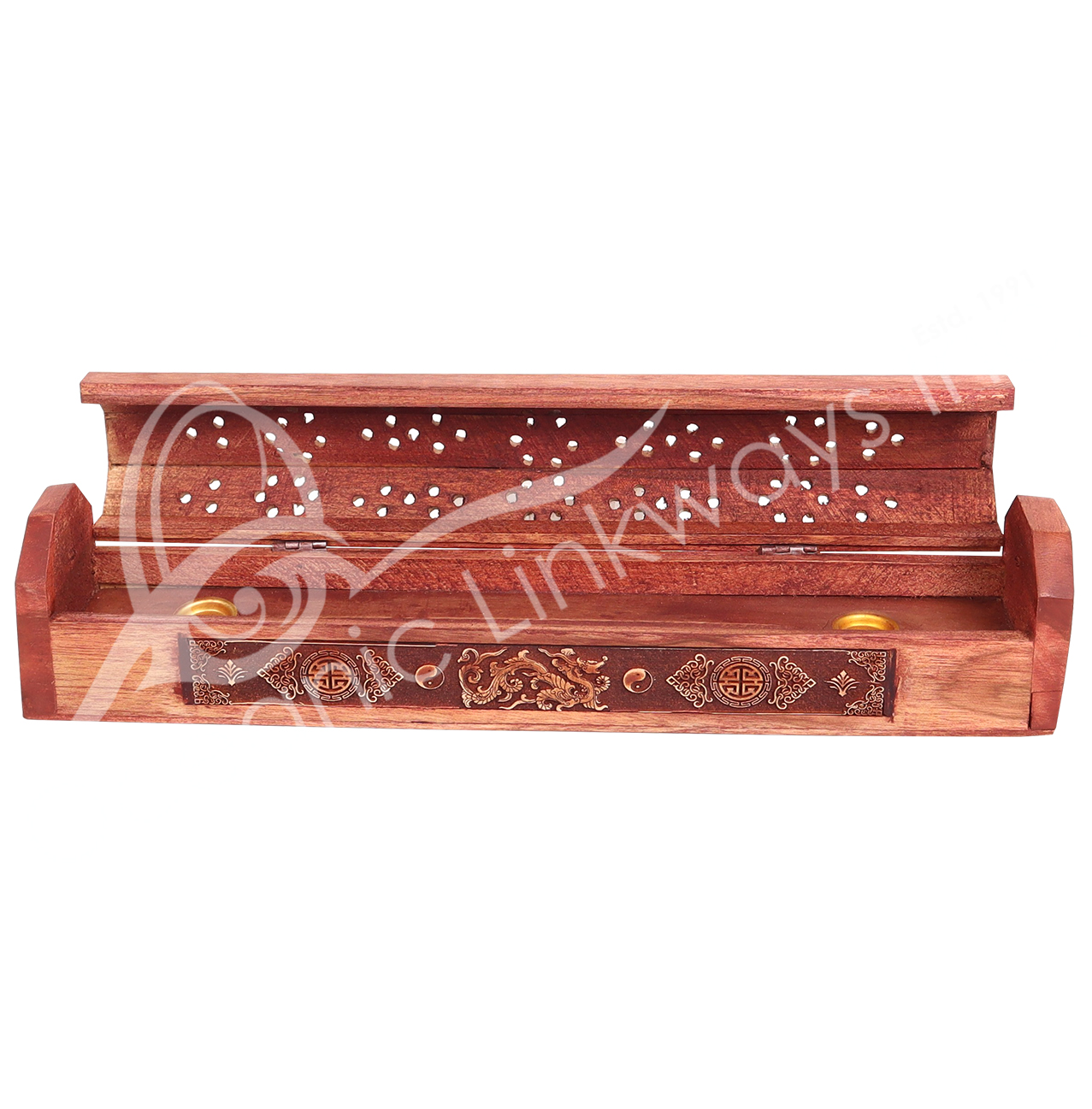 INCENSE STORAGE BOX – ACACIA WOOD LASER ENGRAVED DRAGON (PK 2) 12″