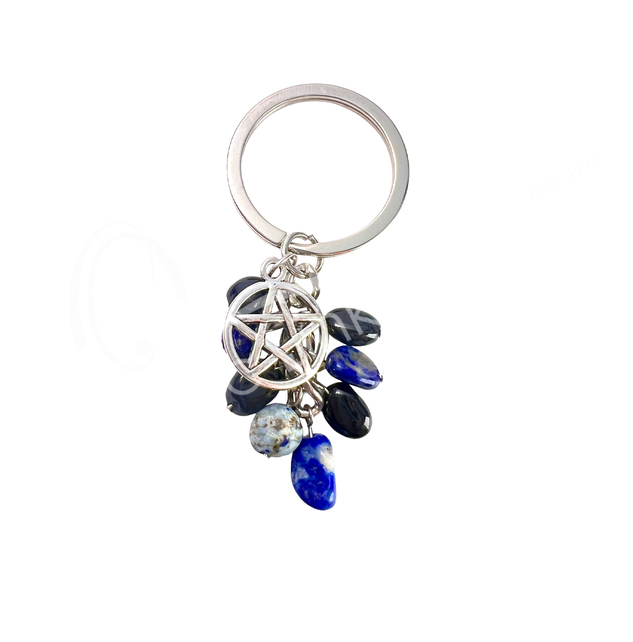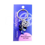 KEYCHAIN – NUGGETS TOURMALINE, BLACK & SODALITE WITH PENTACLE 2.5-2.75″L