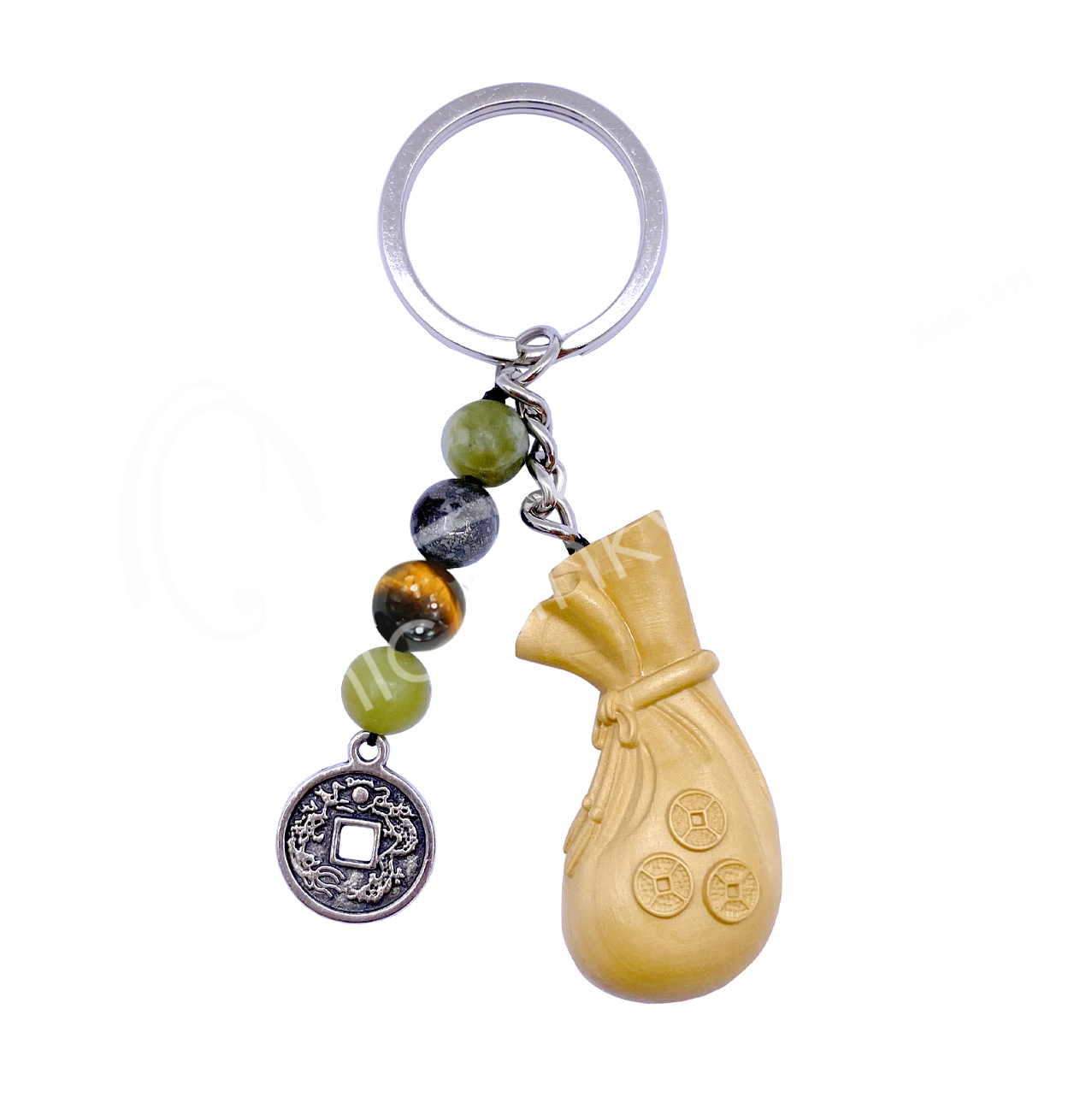 KEYCHAIN – WOOD MONEY BAG FOR PROSPERITY 3.5-3.75″L