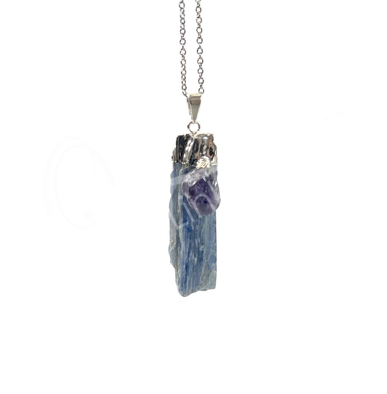 PENDANT – KYANITE WITH AMETHYST SILVER PLATED CAP 1.5-2″
