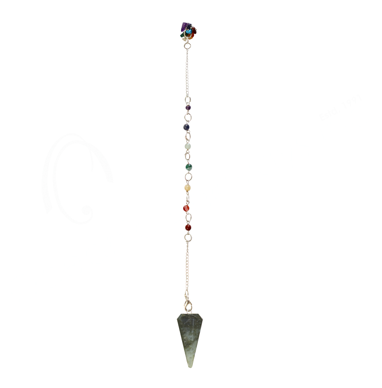 PENDULUM – HEXAGONAL LABRADORITE CHAKRA CHAIN WITH CHIPS 10.5-11.5″L