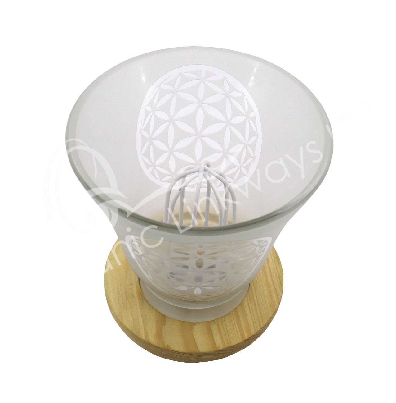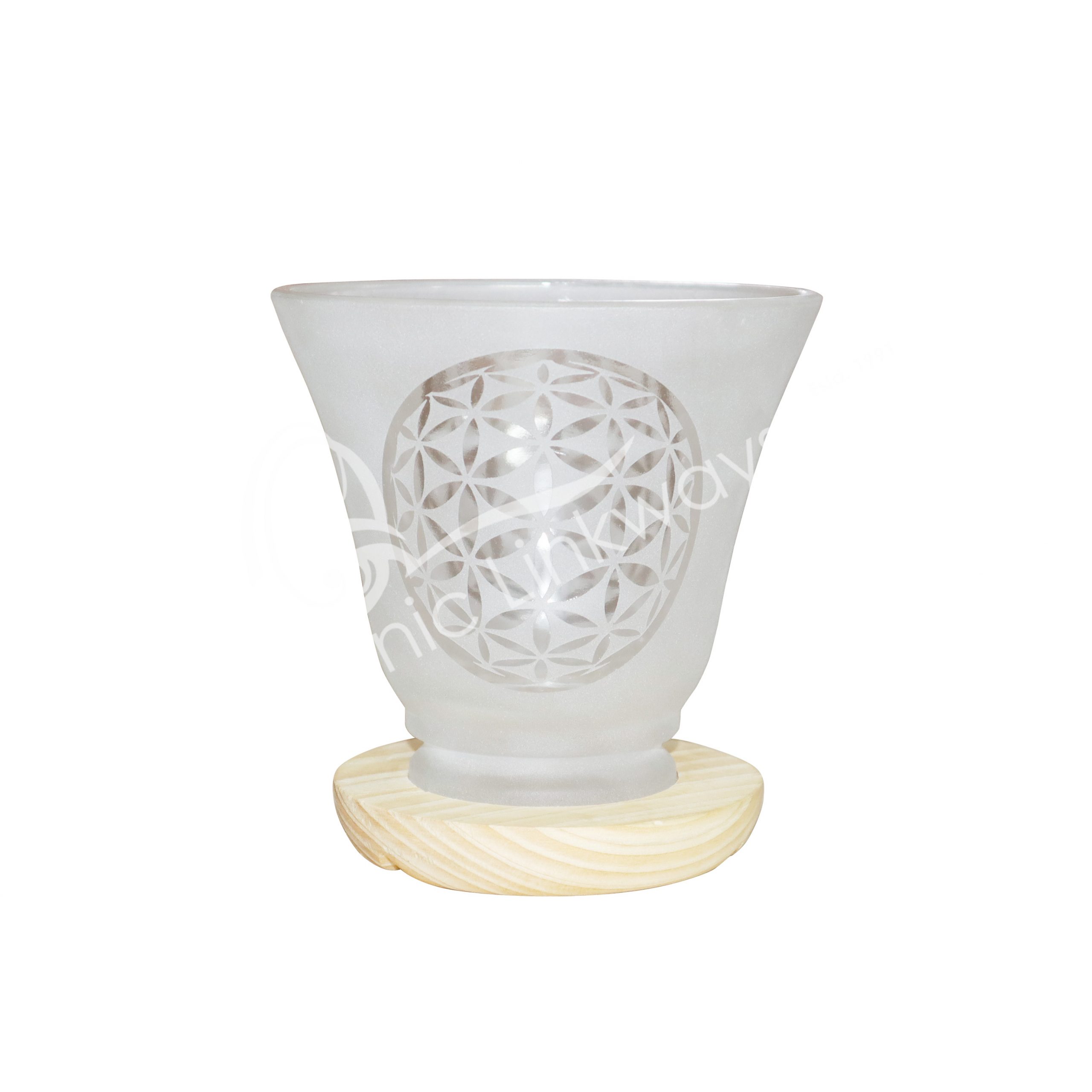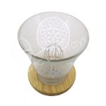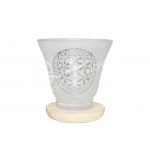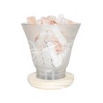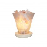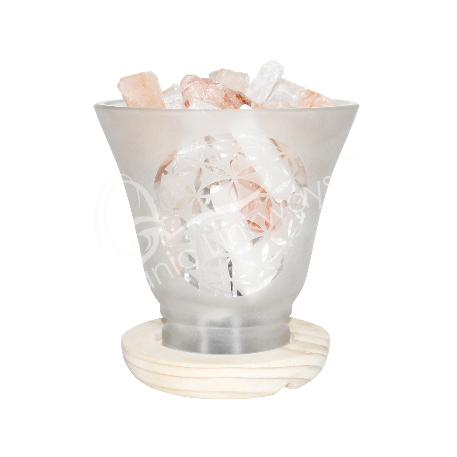 LAMP – SALT & SELENITE CHUNKS IN FROSTED GLASS WITH FLOWER OF LIFE NO CORD 4.75-5″H