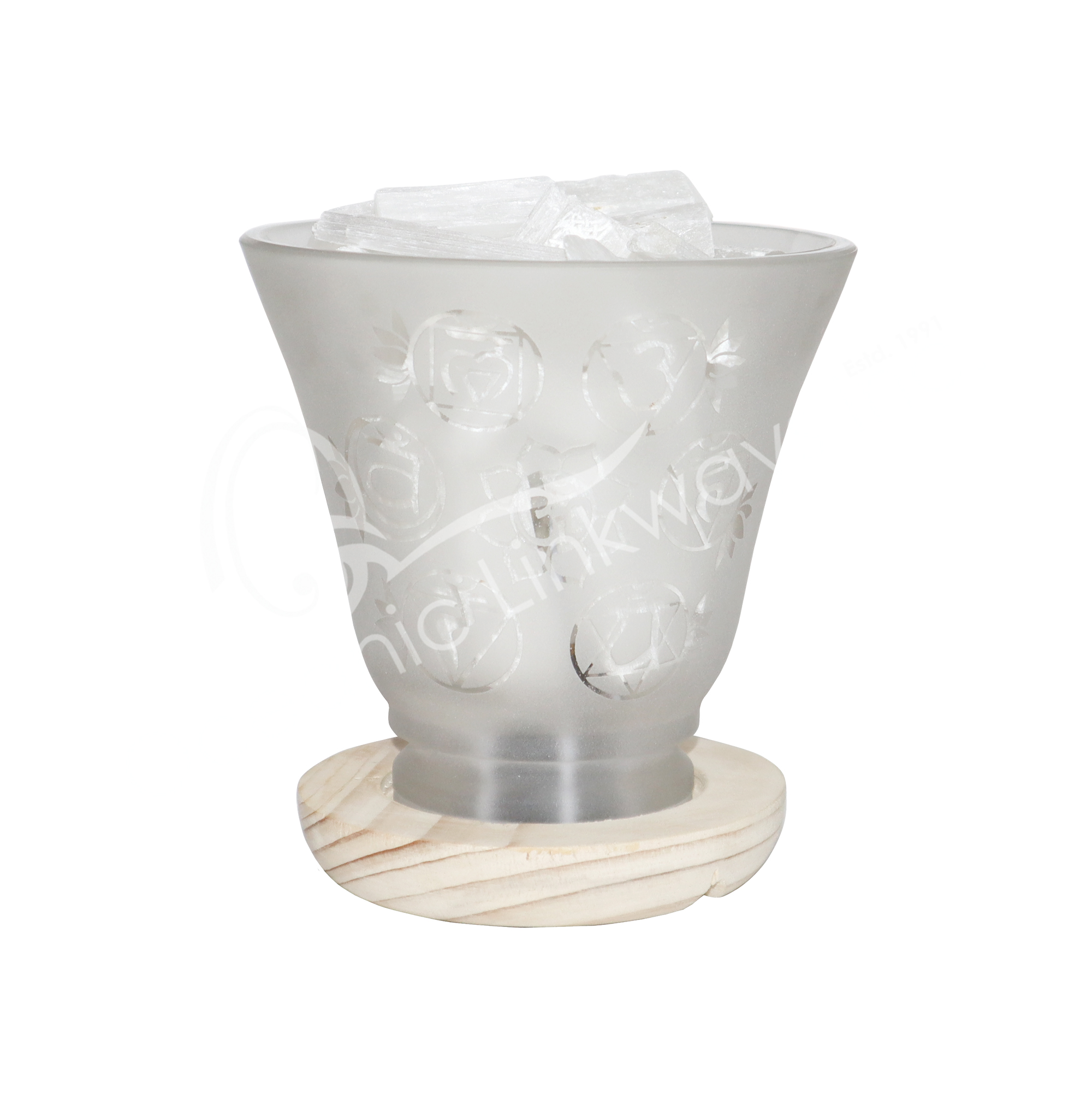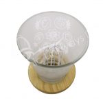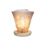 LAMP – SALT & SELENITE CHUNKS IN FROSTED GLASS WITH FLOWER OF LIFE NO CORD 4.75-5″H