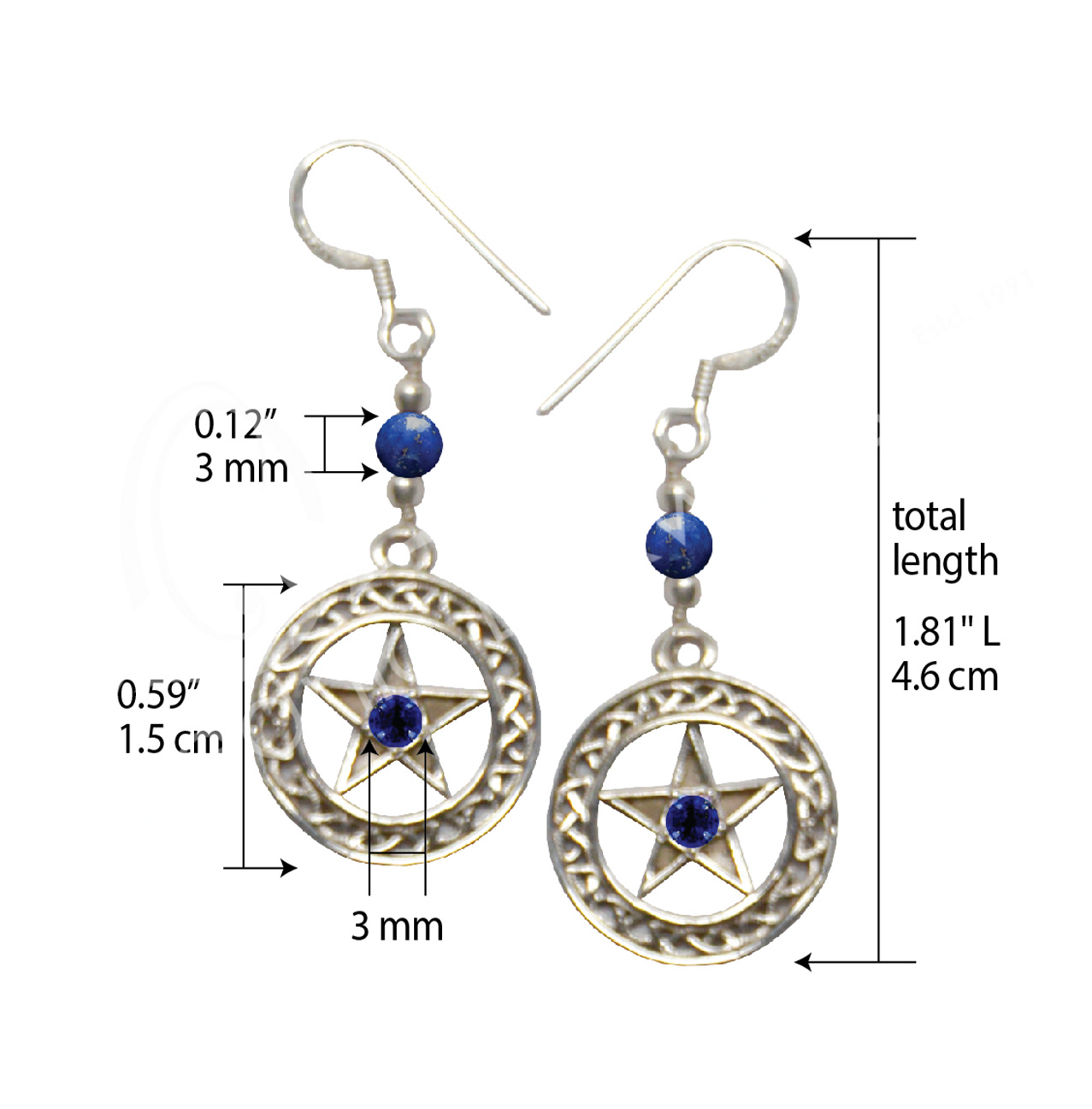 STERLING SILVER – EARRINGS PENTACLE LAPIS LAZULI 2″