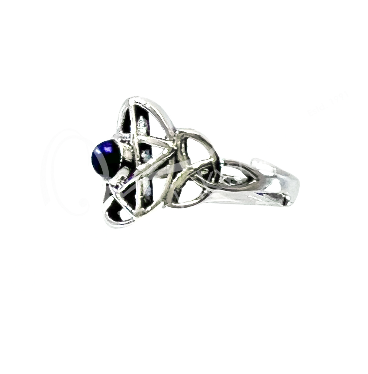 STERLING SILVER – RING, ADJUSTABLE PENTACLE LAPIS LAZULI
