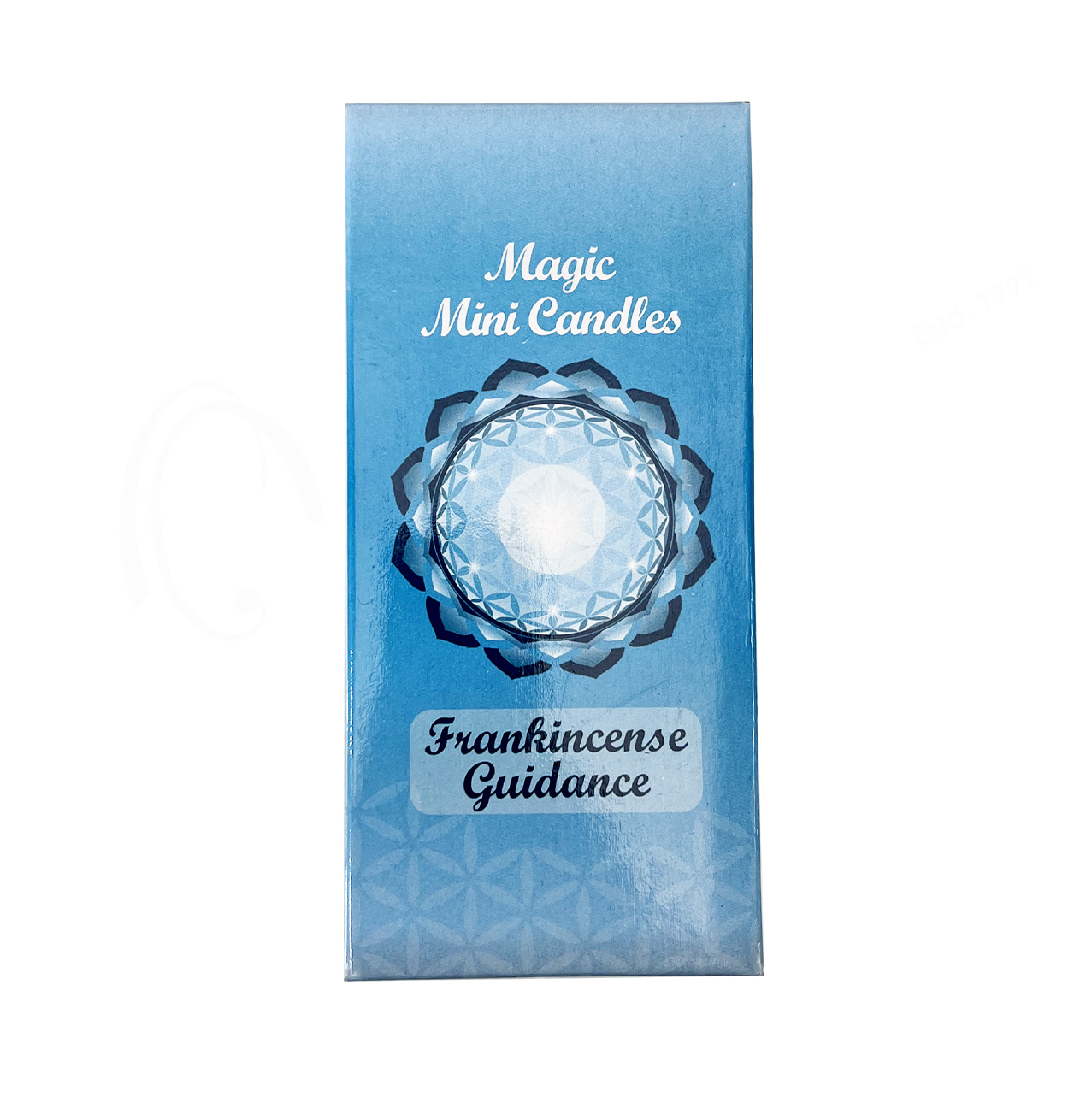 (CLOSE OUT) CANDLE – MINI SCENTED LIGHT BLUE FRANKINCENSE/GUIDANCE (PK 20) 4.75-5″H