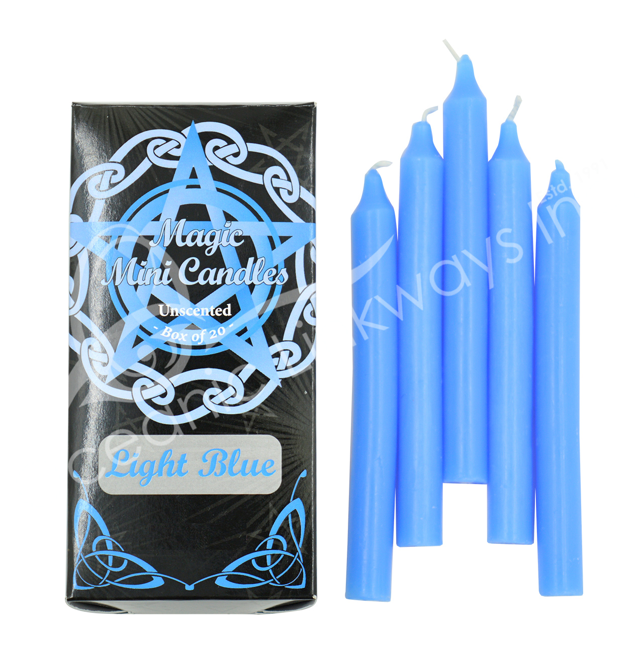 CANDLE – MINI UNSCENTED MAGIC LIGHT BLUE (PK 20) 4.75-5″H