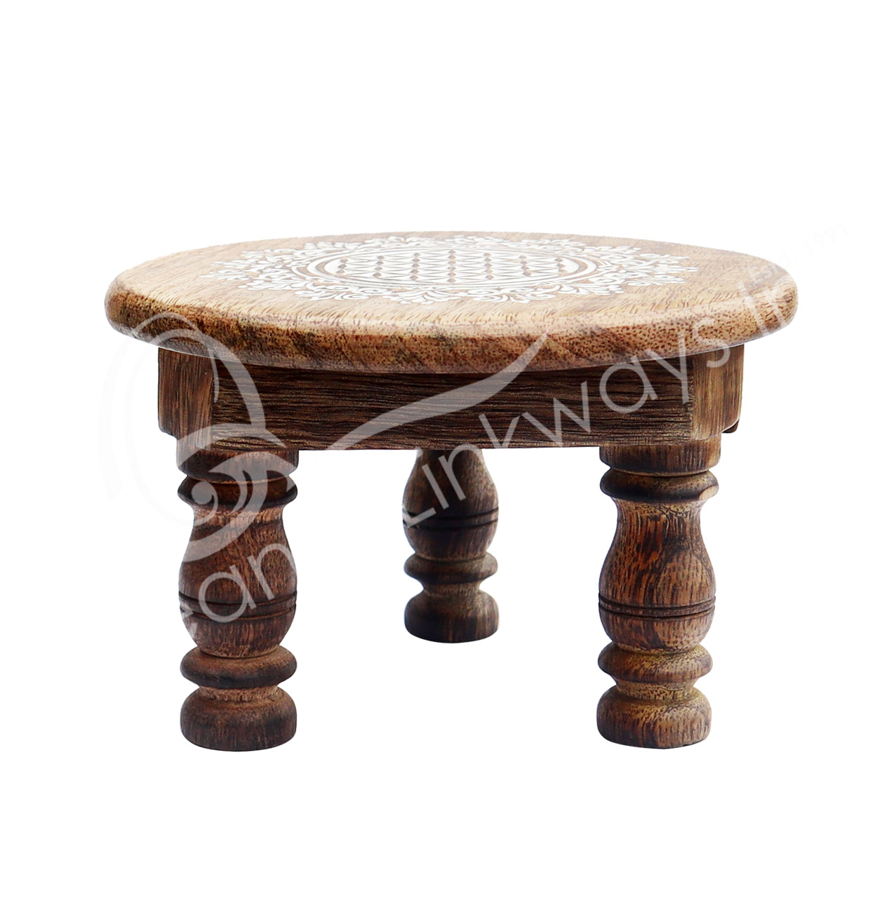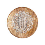 ALTAR TABLE – MANGO WOOD ENGRAVED FLOWER OF LIFE 6″DIA. X 4″H