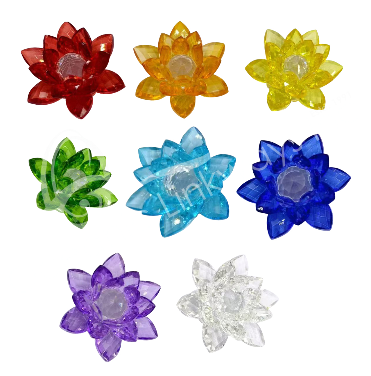 CRYSTAL – LOTUS WITH SPHERE MIXED COLORS (SET OF 8) 2.5″