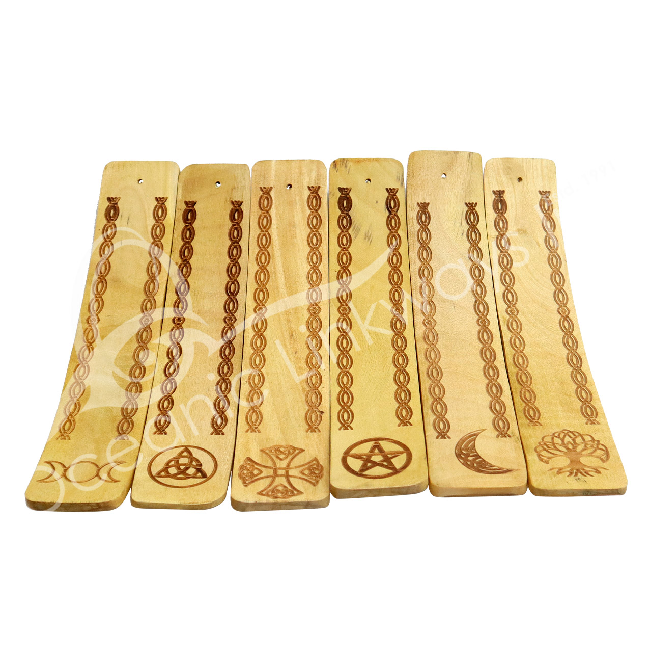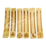 INCENSE HOLDER – WOOD PAGAN MIXED DESIGNS (SET OF 6) 2 X 10″