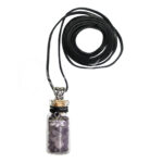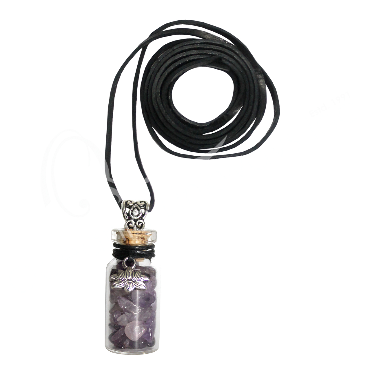 NECKLACE – CHIPS STONES IN BOTTLE AMETHYST WITH LOTUS 1.5″H