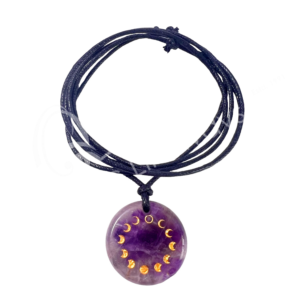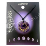 NECKLACE – MOON PHASES AMETHYST ROUND ENGRAVED 9-16.5″L