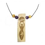 NECKLACE – PALO SANTO WOOD GODDESS ENGRAVED WITH AMETHYST (PK 3) 6-12″L