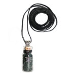 NECKLACE – CHIPS STONES IN BOTTLE AGATE, GREEN MOSS WITH TURTLE 1.5″H