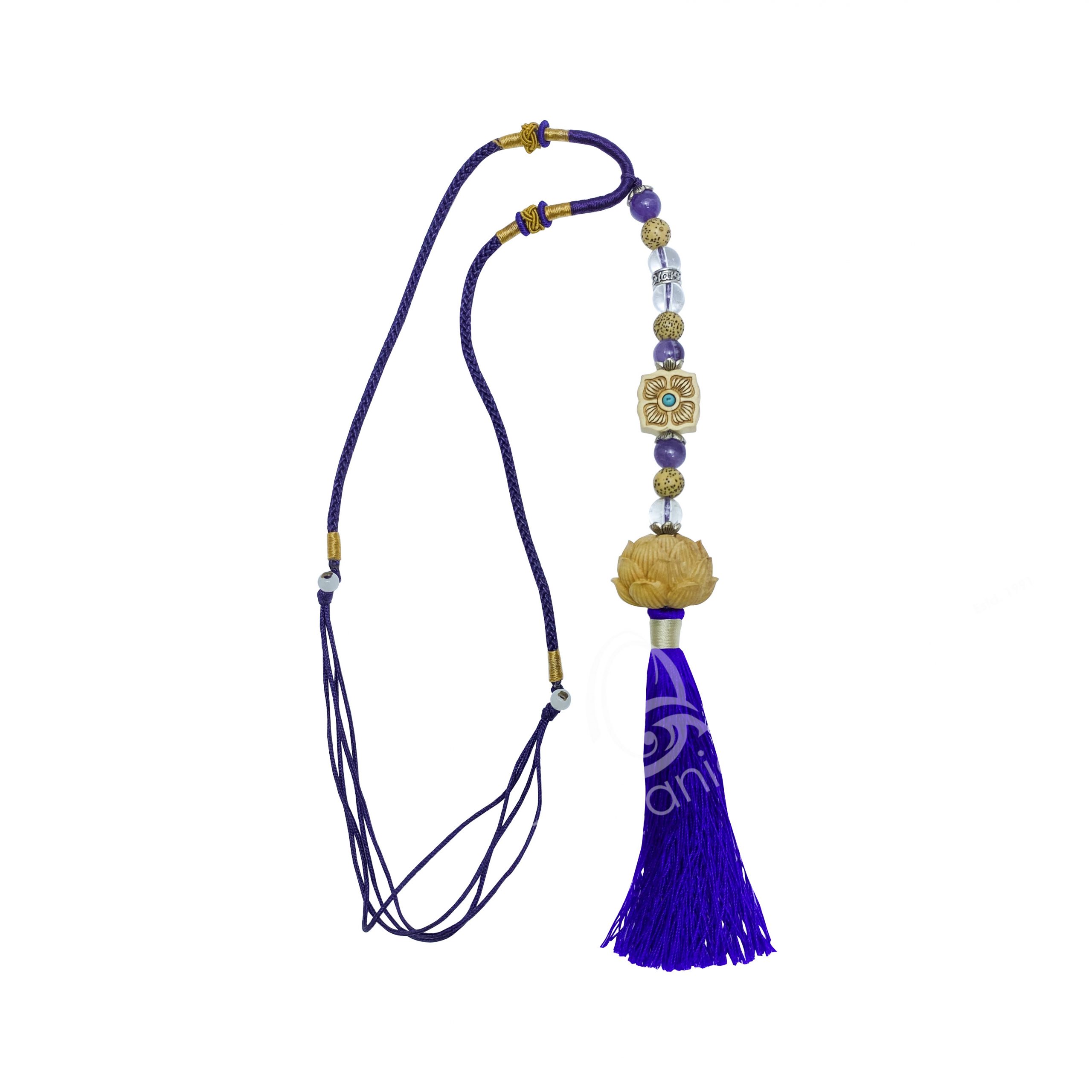 (CLOSE OUT) NECKLACE/HANGING – LOTUS/SPIRITUALITY WITH AMETHYST & CRYSTAL QUARTZ 17.5-20.5″L