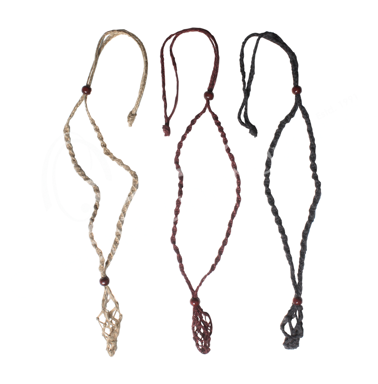 NECKLACE – NET BAG FOR STONE, HEMP MIXED COLORS ADJUSTABLE (SET OF 6) 10.5-15″L