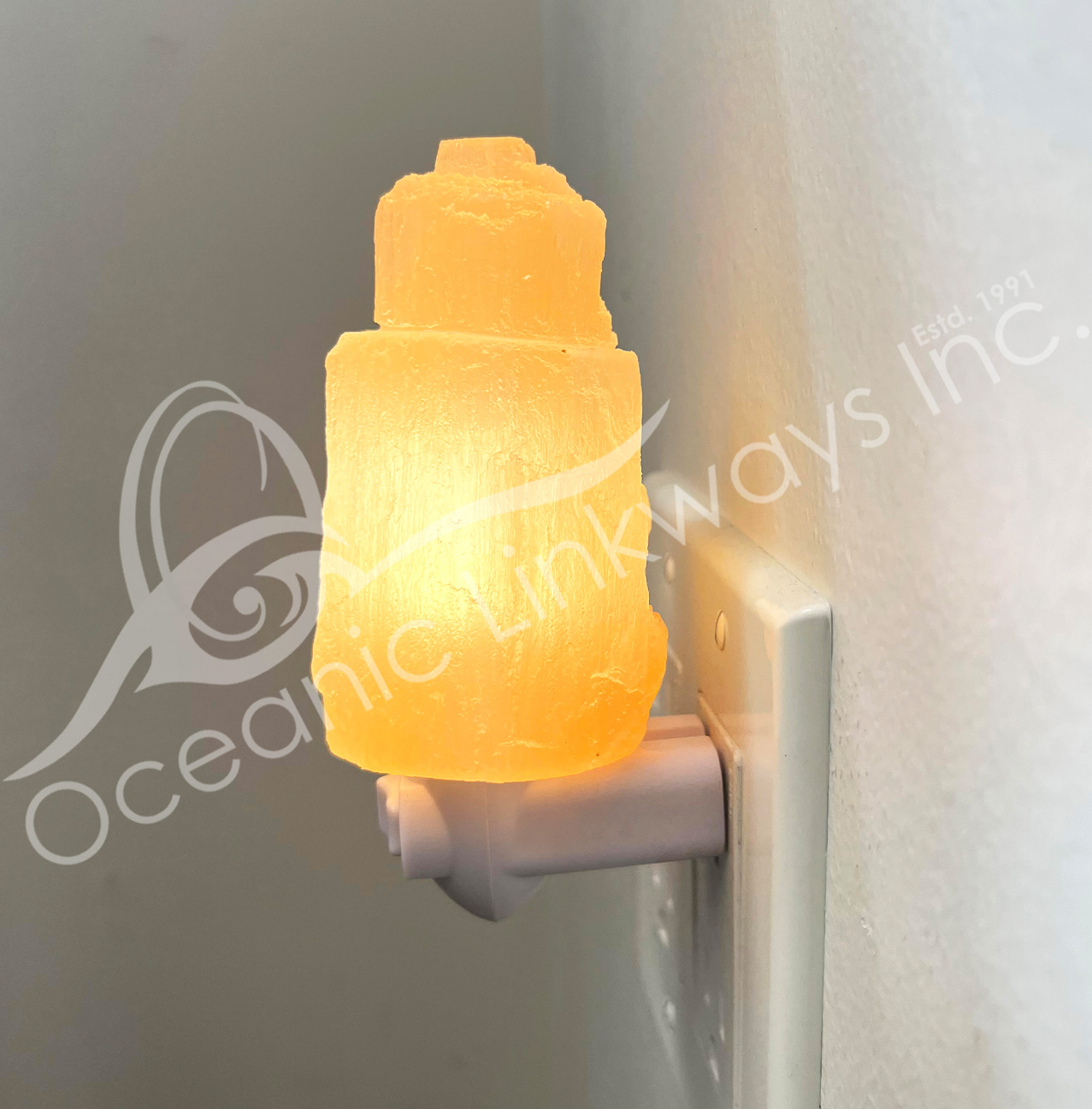 NIGHT LIGHT – SELENITE, ORANGE ICEBERG 4″