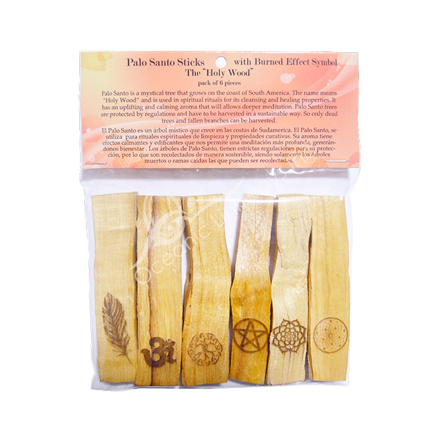 PALO SANTO – STICKS WITH SYMBOLS (PK 6) 4″