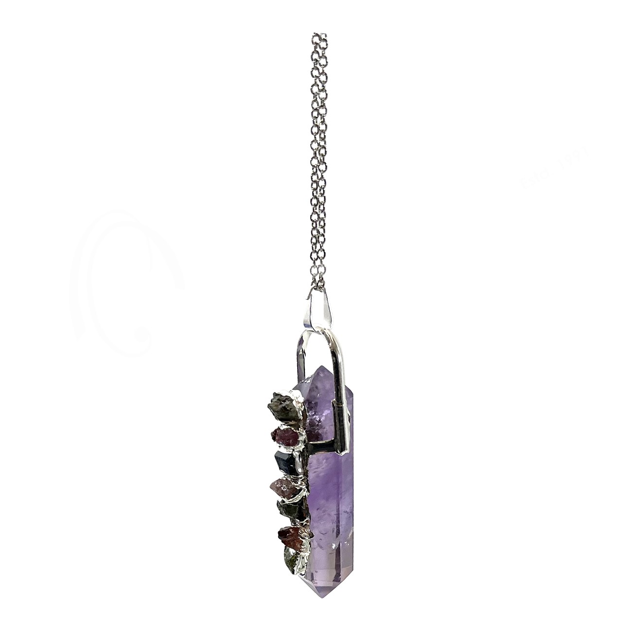 PENDANT – POINT DOUBLE TERMINATED AMETHYST WITH TOURMALINES FACETED 2-2.25″