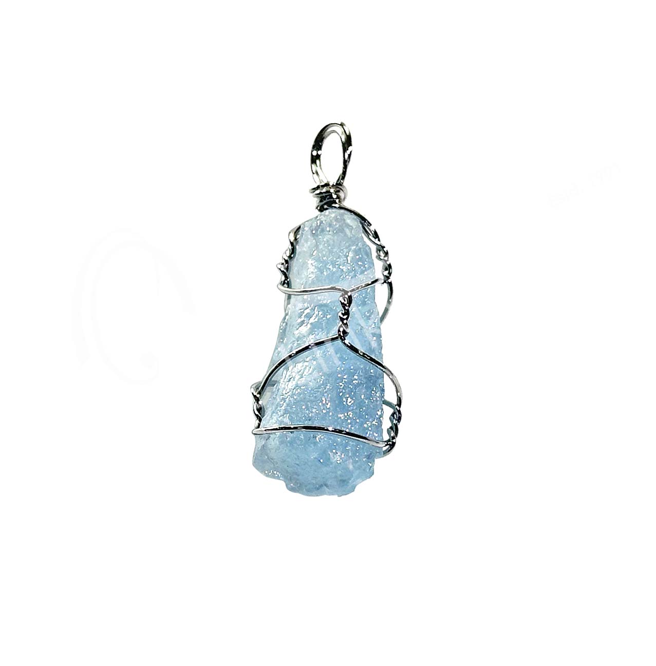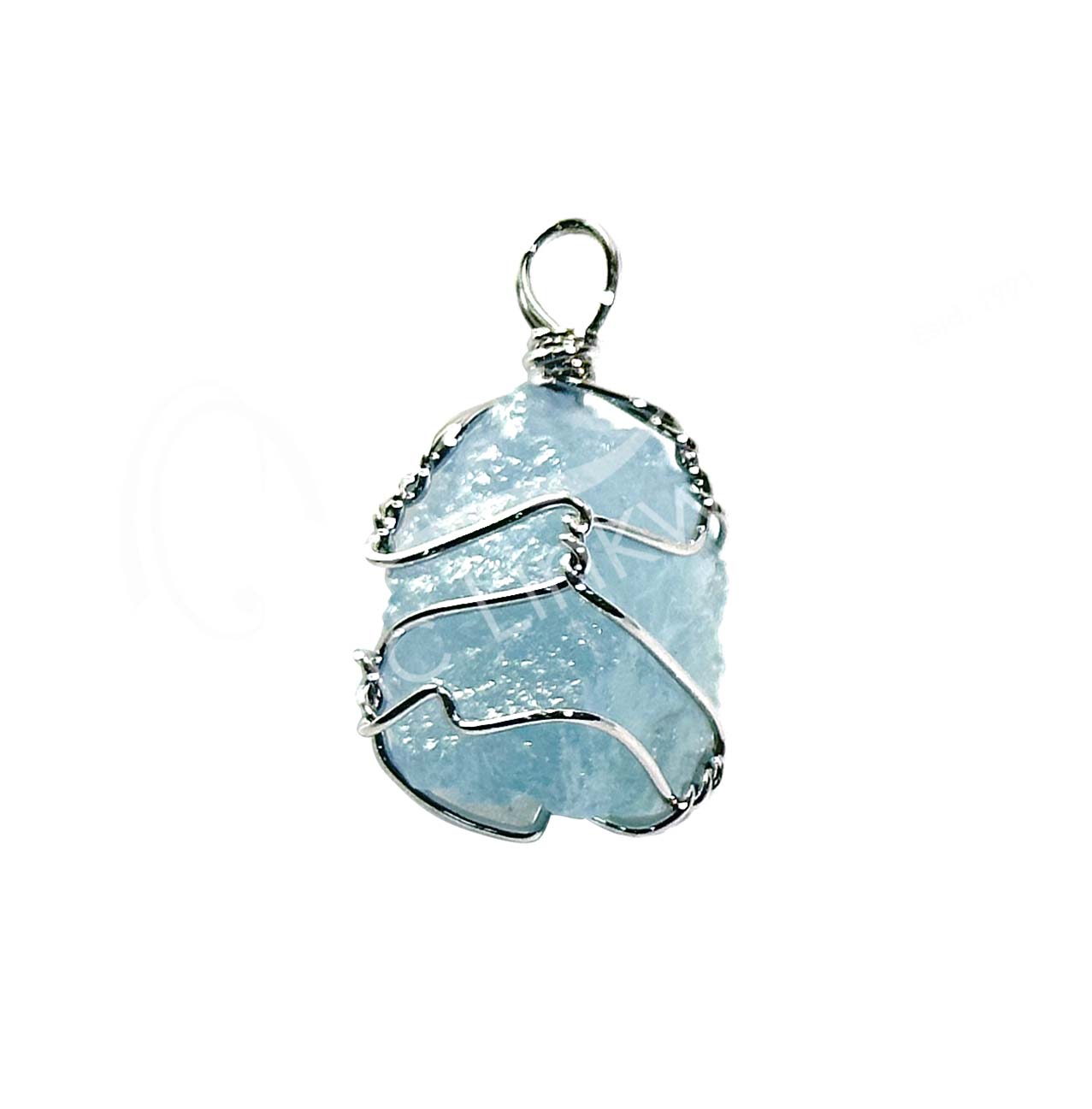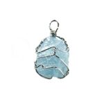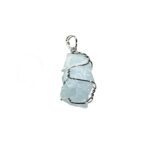 PENDANT – BRASS, SILVER PLATED WIRE WRAP AQUAMARINE 1-1.35″