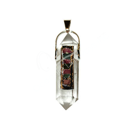 PENDANT – POINT DOUBLE TERMINATED CRYSTAL QUARTZ WITH TOURMALINES FACETED 2″
