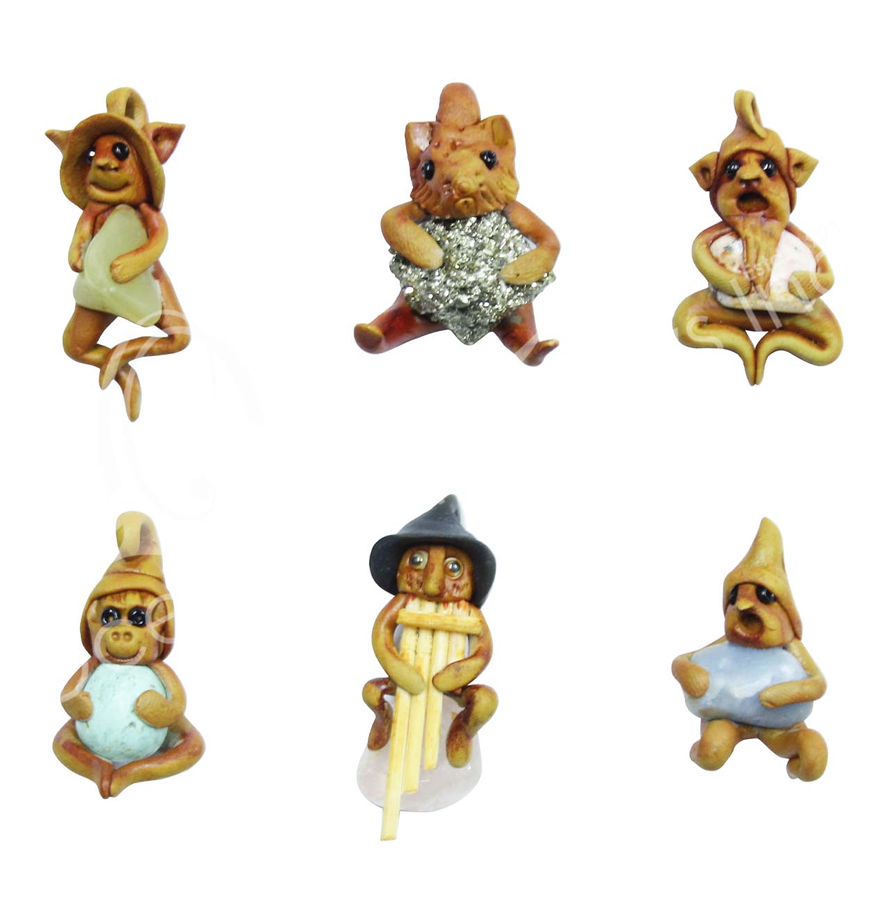 PENDANT – FEMO TROLL WITH STONES MIXED DESIGNS (SET OF 6) 30-50 MM