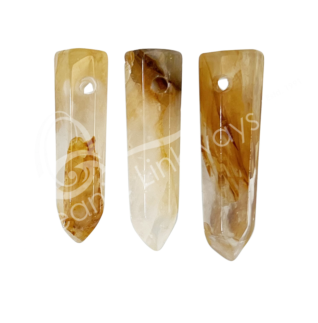 PENDANT – POINT WITH 2 MM HOLE 6 SIDES GOLDEN HEALER QUARTZ 1-2″