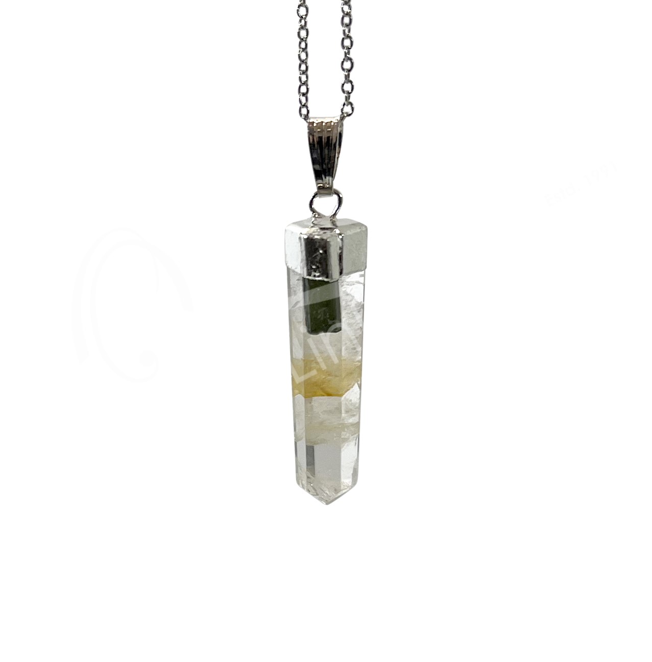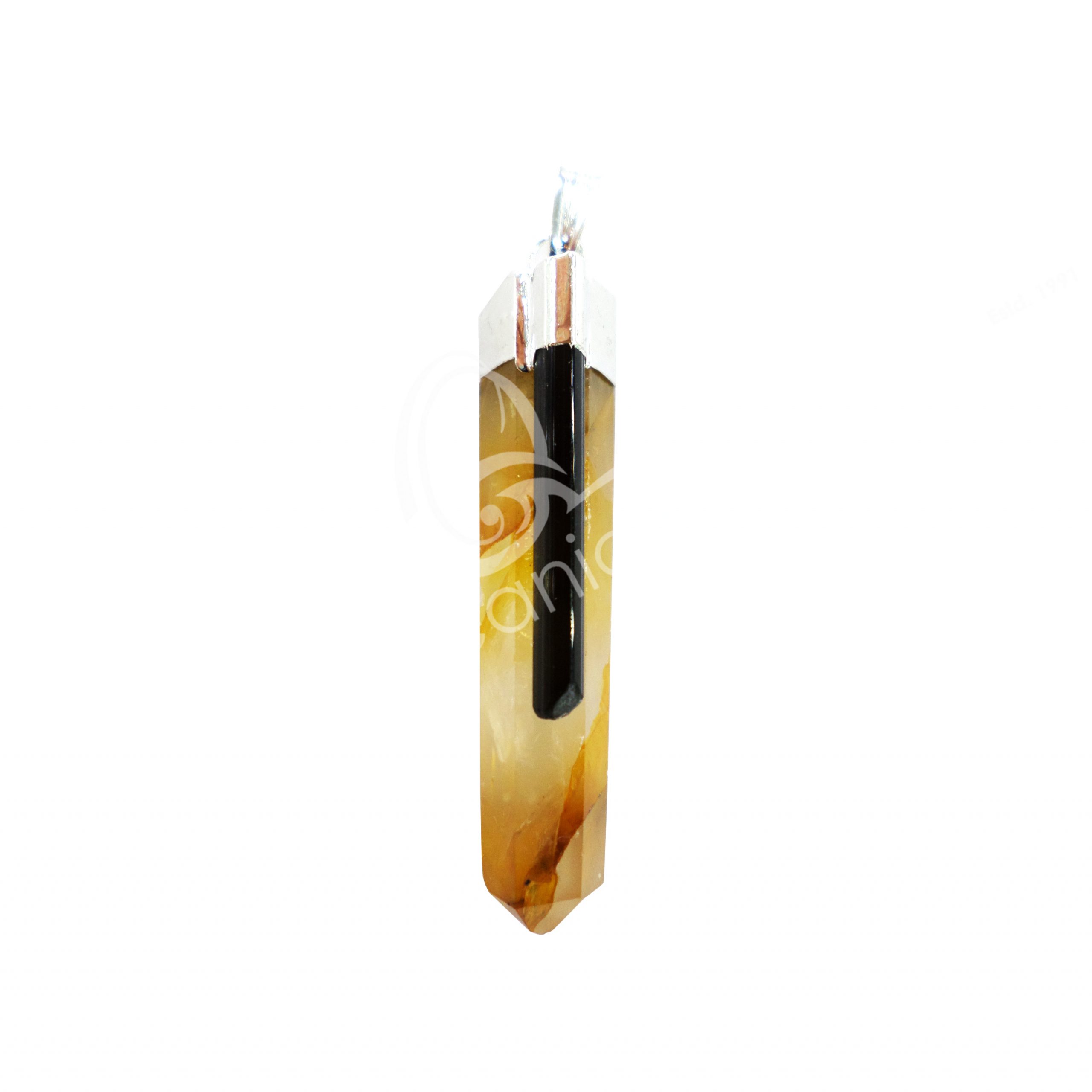 PENDANT – POINT POLISHED GOLDEN HEALER QUARTZ WITH BLACK TOURMALINE ACCENT 1-2″