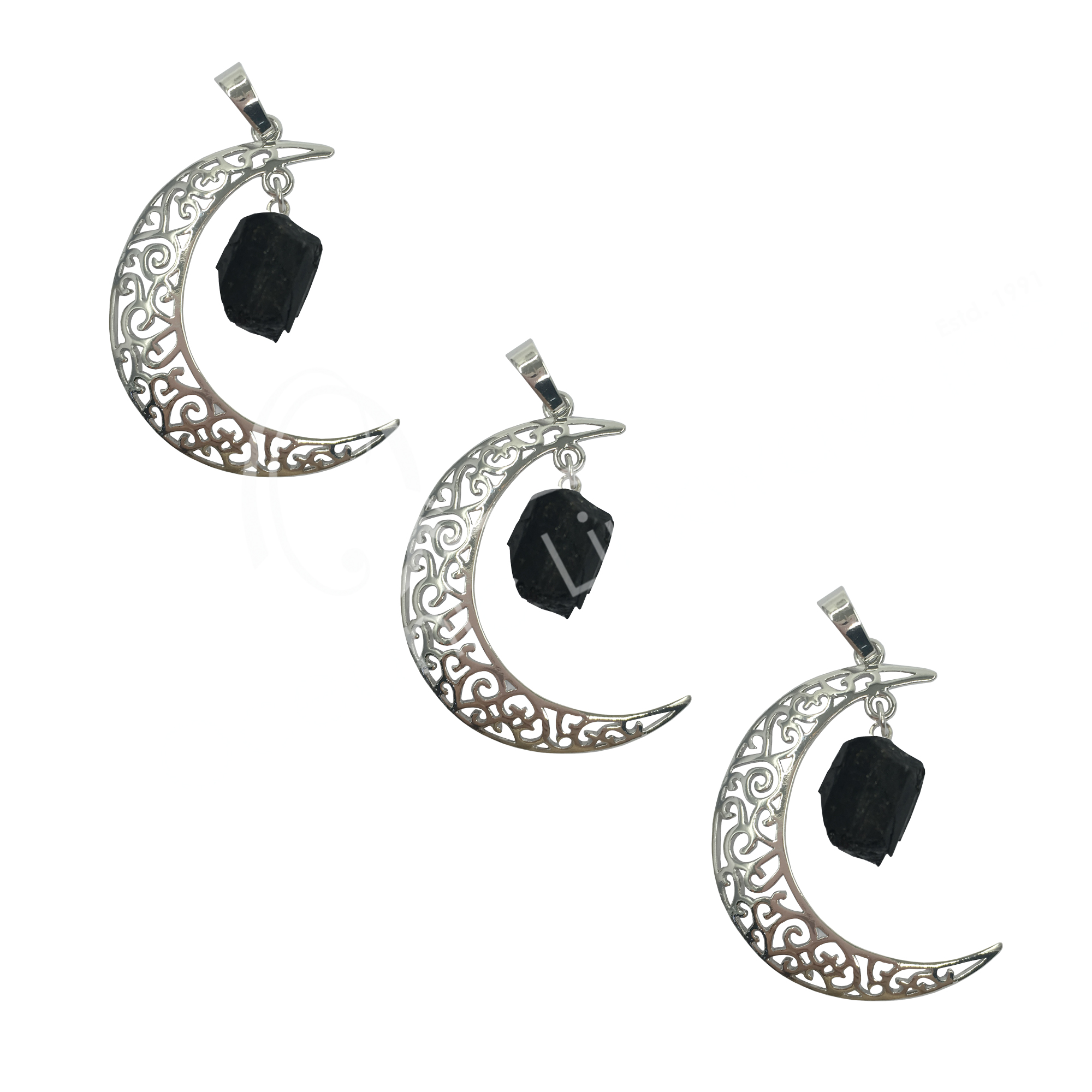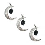 PENDANT – MOON WITH HANGING BLACK TOURMALINE (PK 3) 1.5″