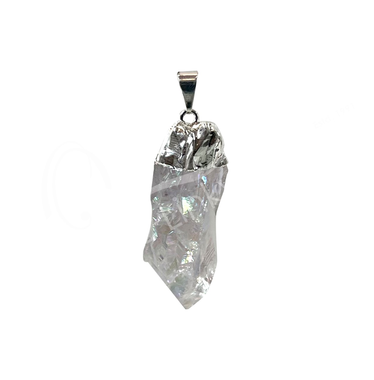 PENDANT – POINT AMETHYST, ROUGH PLATED AB WITH CAP 1.25-1.75″