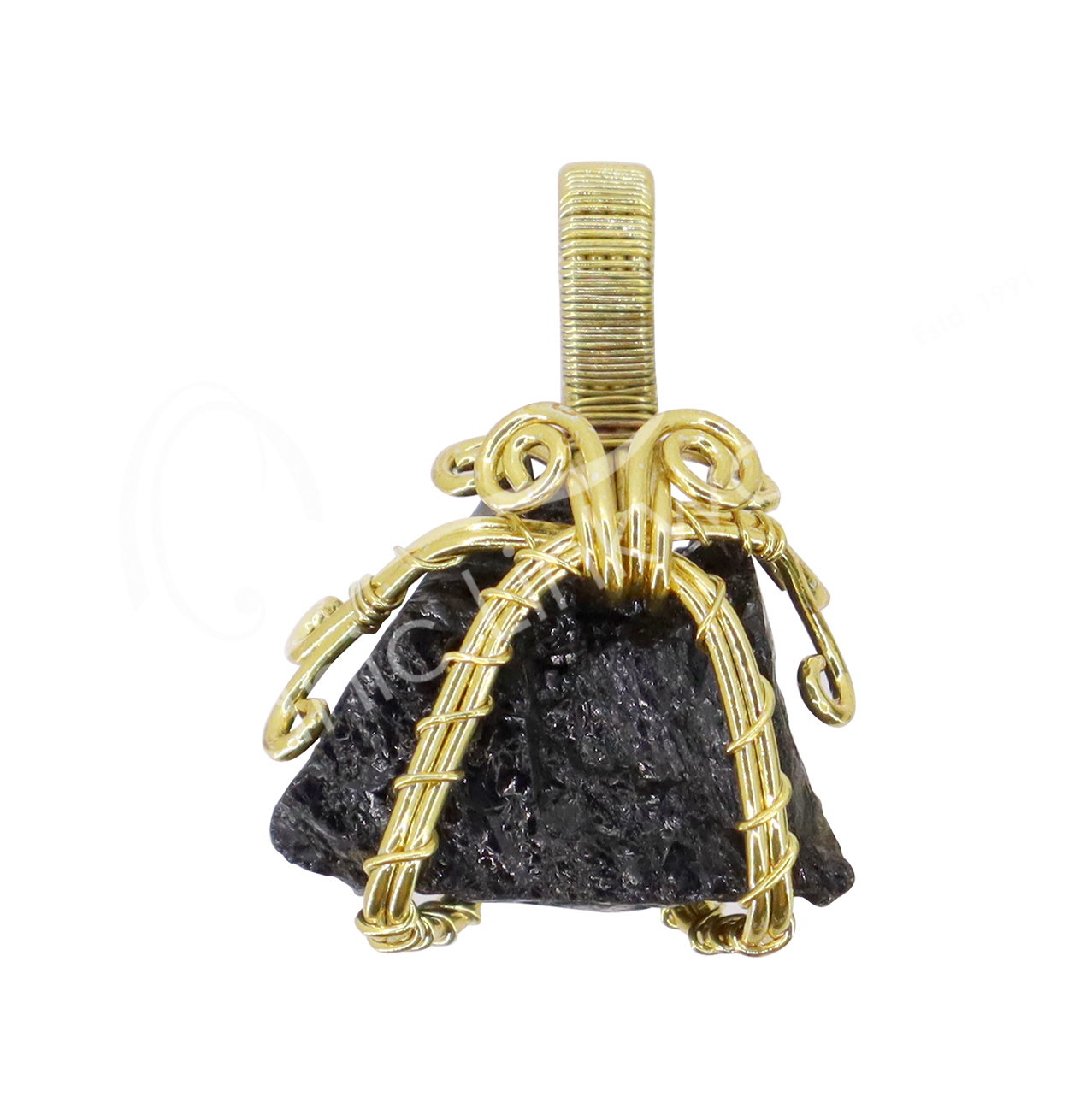 PENDANT – WIRE WRAP ROUGH TOURMALINE, BLACK 1.75-2″