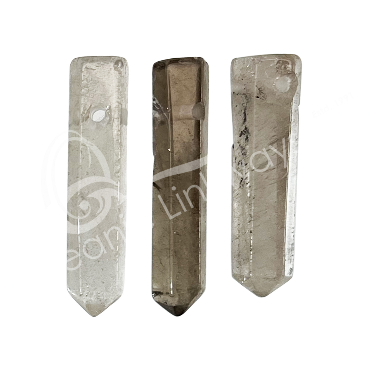 PENDANT – POINT WITH 2 MM HOLE 6 SIDES SMOKY QUARTZ 1-2″