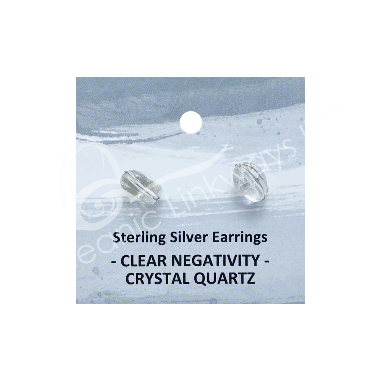 (CLOSE OUT) STERLING SILVER – EARRING STUDS CRYSTAL QUARTZ WIRE WRAP 7-8 MM
